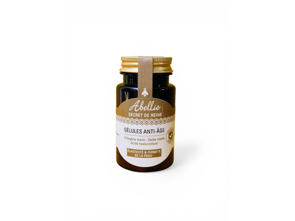 Abychom pokožce vrátili její pružnost, obsahují naše kapsle Anti-age značky Abellie vzácnou kombinaci mořského kolagenu, kyseliny hyaluronové a mateří kašičky. Kolagen a kyselina hyaluronová se přirozeně vyskytují v pokožce, jejich tvorba se však s přibývajícím věkem snižuje. Vybrali jsme vysoce vstřebatelný kolagen typu I a III, které se nacházejí především v pokožce. V synergii s kyselinou hyaluronovou přírodního původu, jejíž účinnost na pružnost a pevnost pokožky je prokázána, přispívají naše kapsle ke kráse a pevnosti pokožky. Složení doplňuje mateří kašička bohatá na antioxidanty.